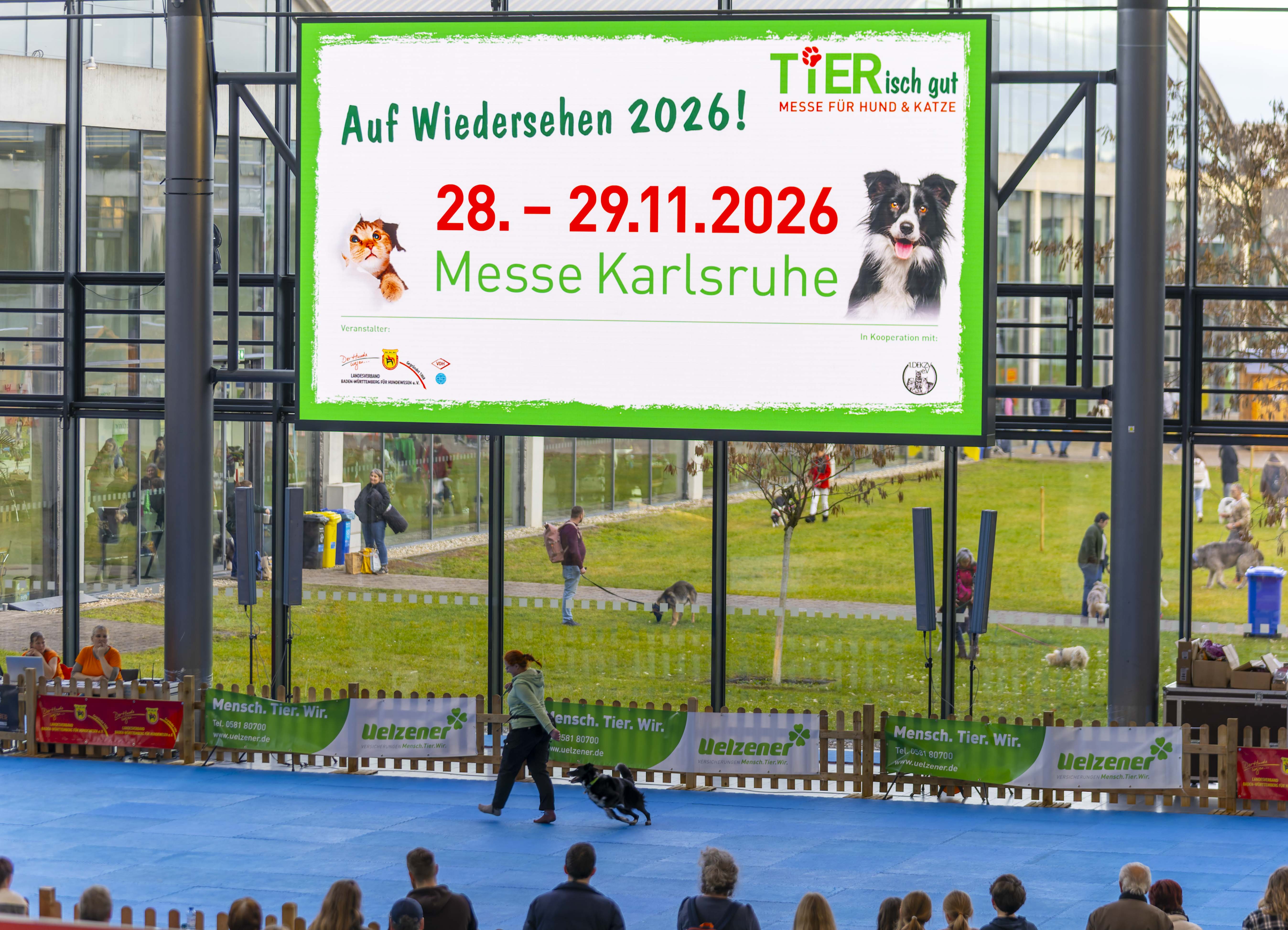 Von Samstag, den 28. November bis Sonntag, den 29. November 2026 können Sie sich in der Messe Karlsruhe einen Überblick über das Produktportfolio der Industrieaussteller verschaffen und beim Einkauf attraktive Messerabatte sichern. Ein umfangreiches Rahmenprogramm mit Showvorführungen und Mitmachaktionen sorgt für Unterhaltung und rundet den Besuch auf der TIERisch gut ab! Bei den Ausstellungen des Landesverband Baden-Württemberg für Hundewesen e.V. und 1. Deutscher Edelkatzenzüchter-Verband e.V. können Sie verschiedene Hunde- sowie Katzenrassen bestaunen und sich über deren Wesensmerkmale und Haltung informieren.